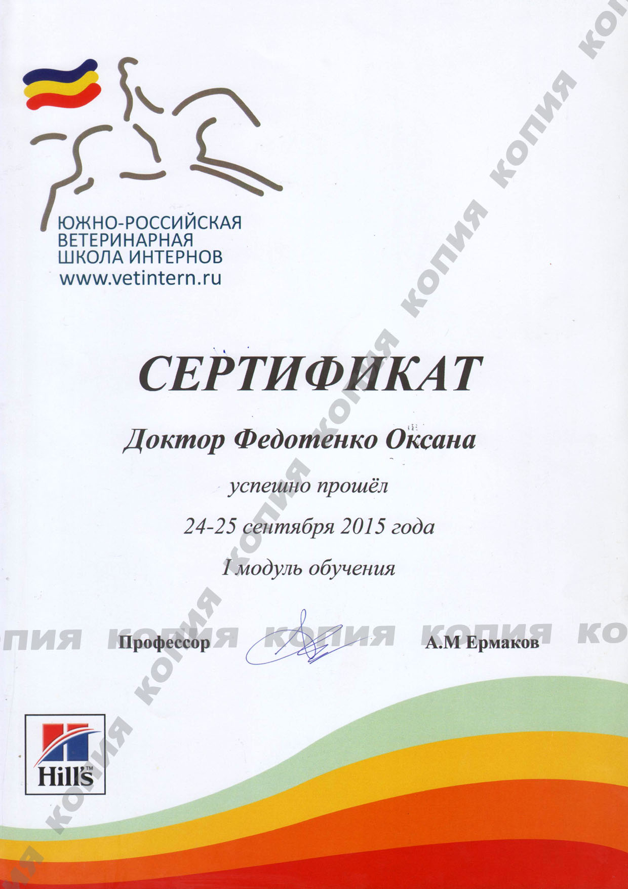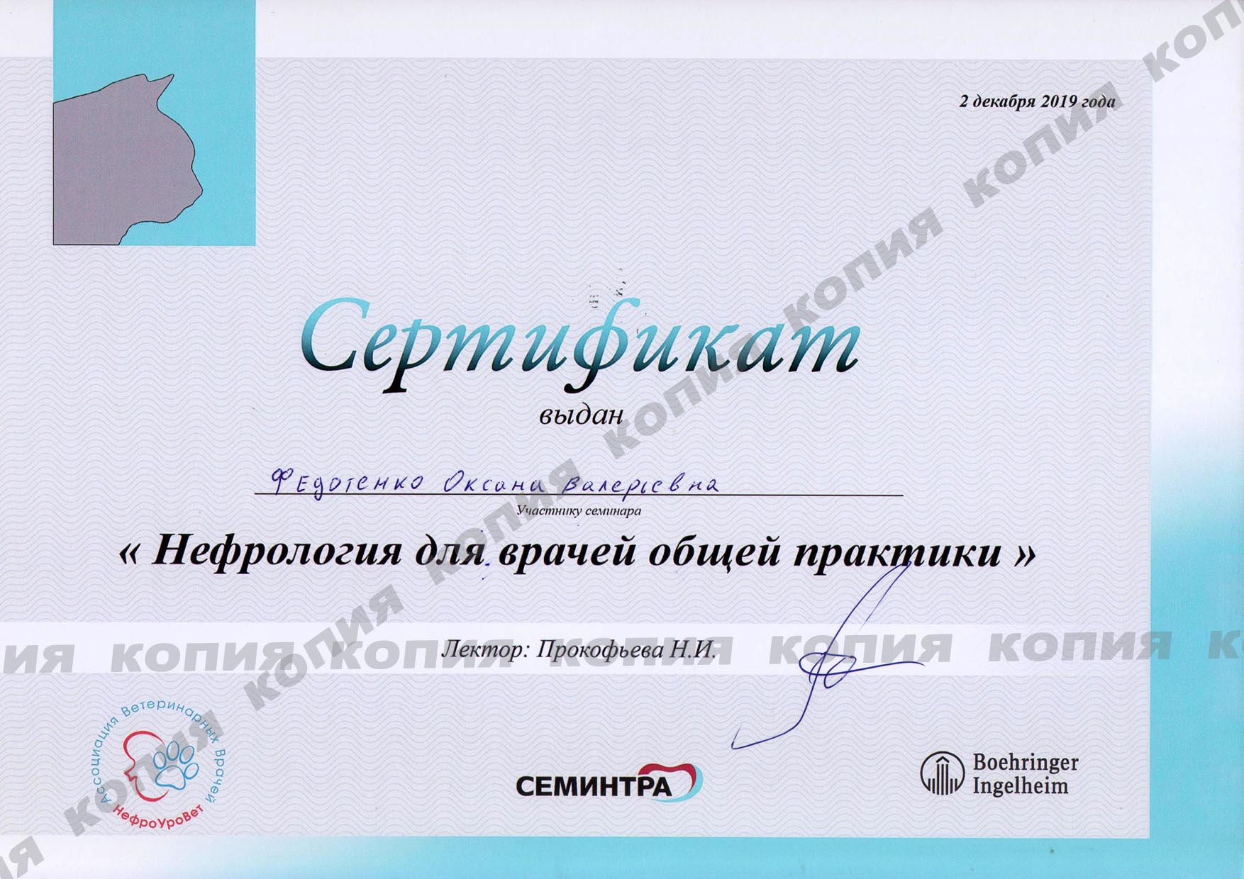 2019 г. по н.в., ветеринарная клиника "КардиоВет", врач общего приема, рентгенолог, офтальмолог