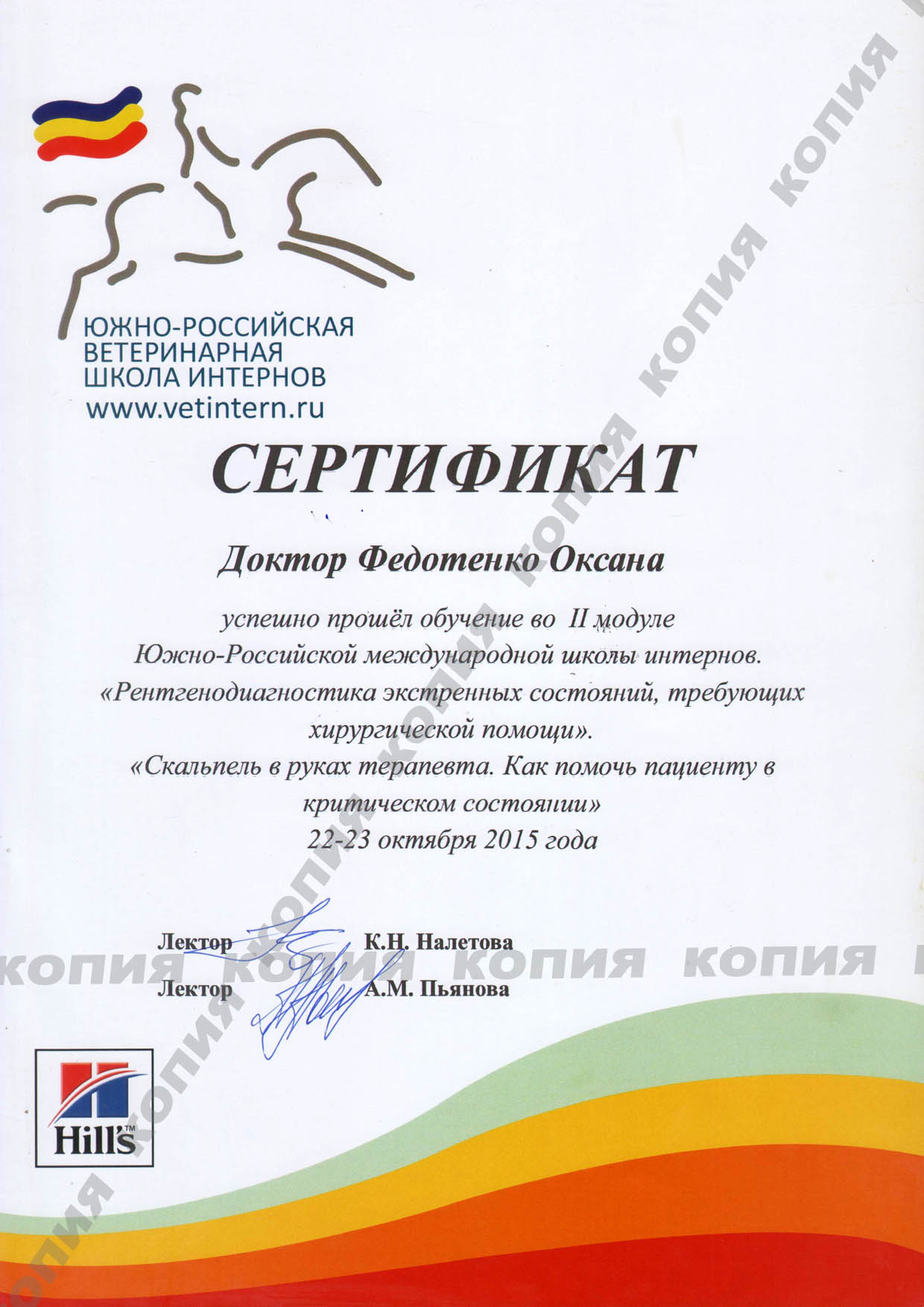 2015 г. - Ростов-на-Дону - 2 модуль, Южно-Российская международная школа интернов. "Рентгенодиагностика экстренных состояний,требующих хирургической помощи", "Скальпель в руках терапевта. Как помочь пациенту в критическом состоянии"