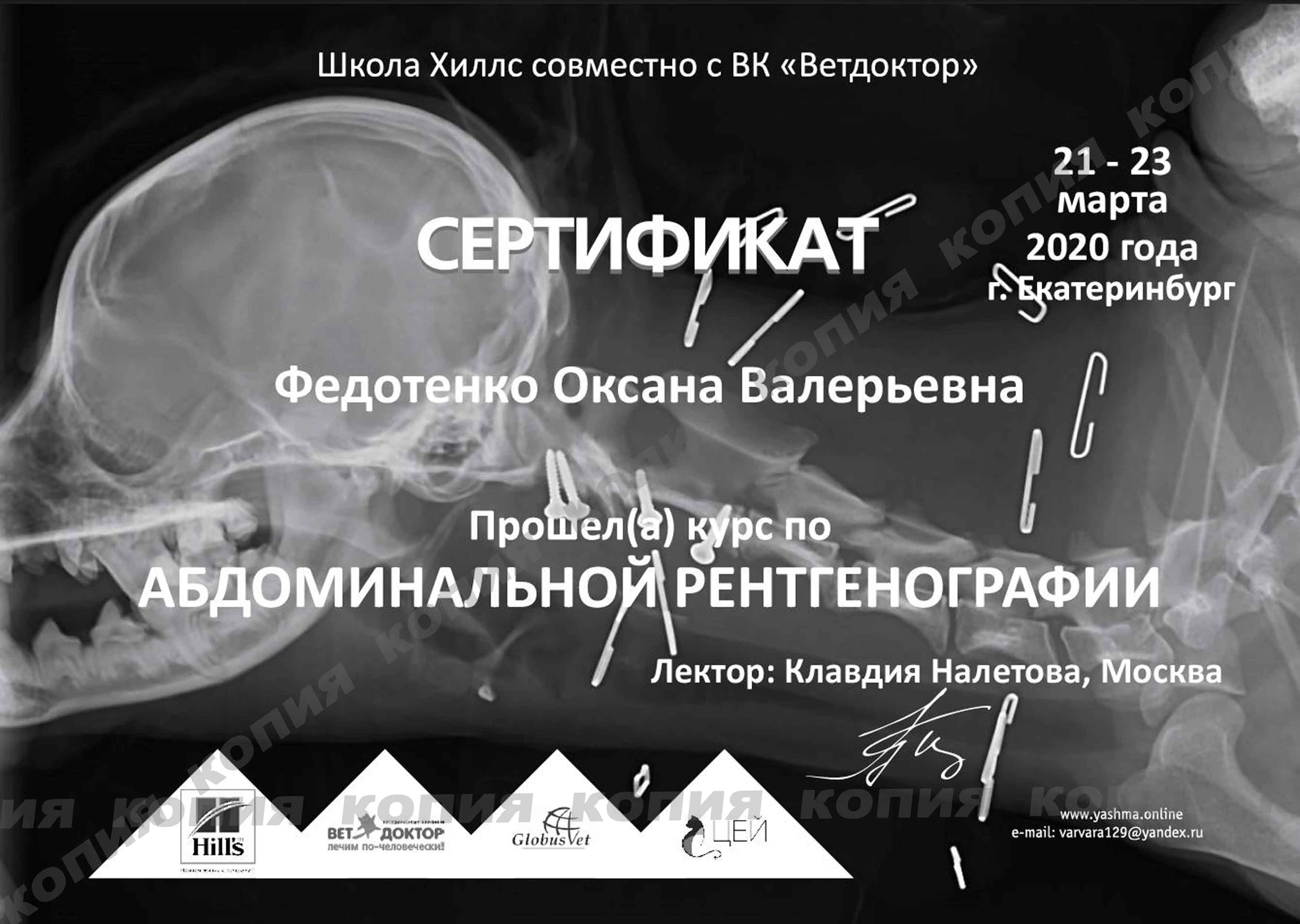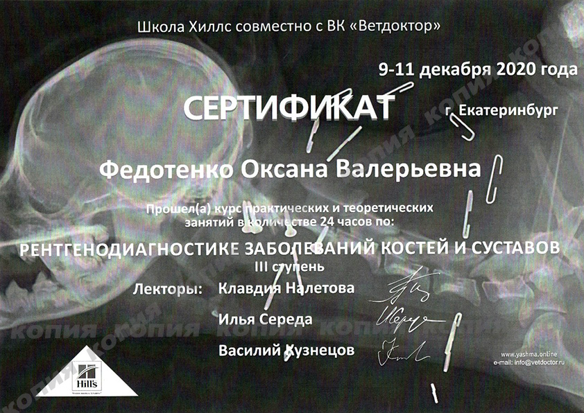2020 г. - Екатеринбург - Курс практических и теоретических занятий "Рентгендиагностика заболеваний костей и суставов, III ступень (Школа Хиллс совместно с ветеринарной клиникой "Ветдоктор"