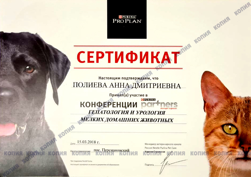 2018 г. - Персиановский - Участник конференции "Гепатология и урология мелких домашних животных"