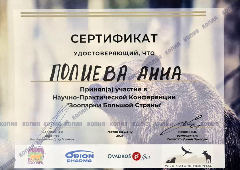 2021 г. - Ростов-на-Дону - Участник Научно-Практической Конференции "Зоопарки большой страны"