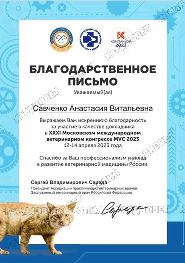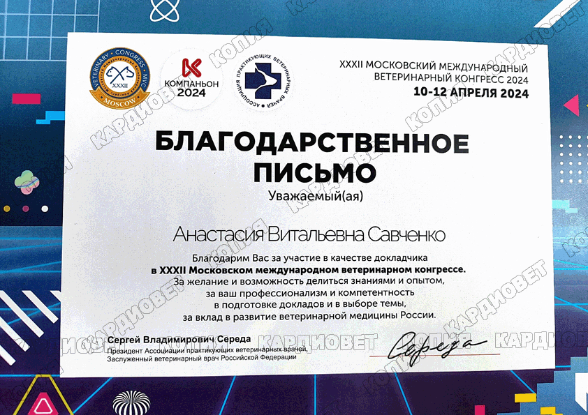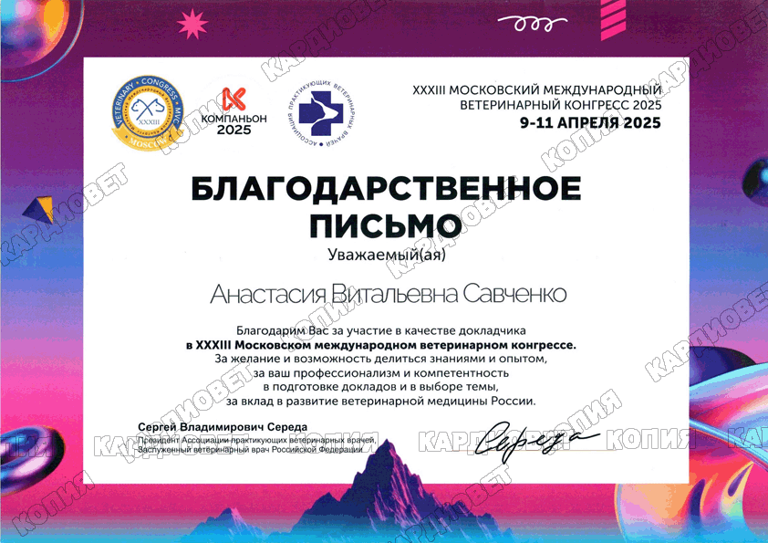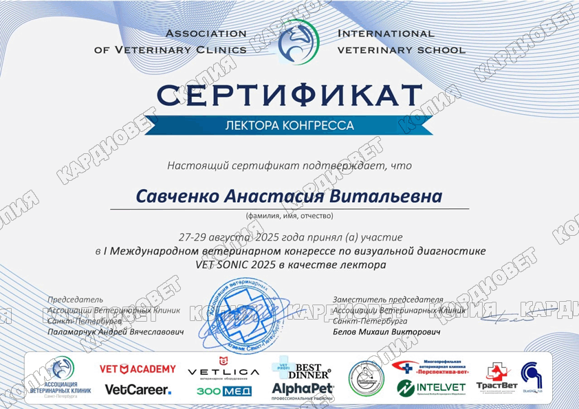 Лектор XXXl Московского международного ветеринарного конгресса - секции "визуальная диагностика", лектор МВК 2023, 2024, 2025 годов секции "Визуальная диагностика".